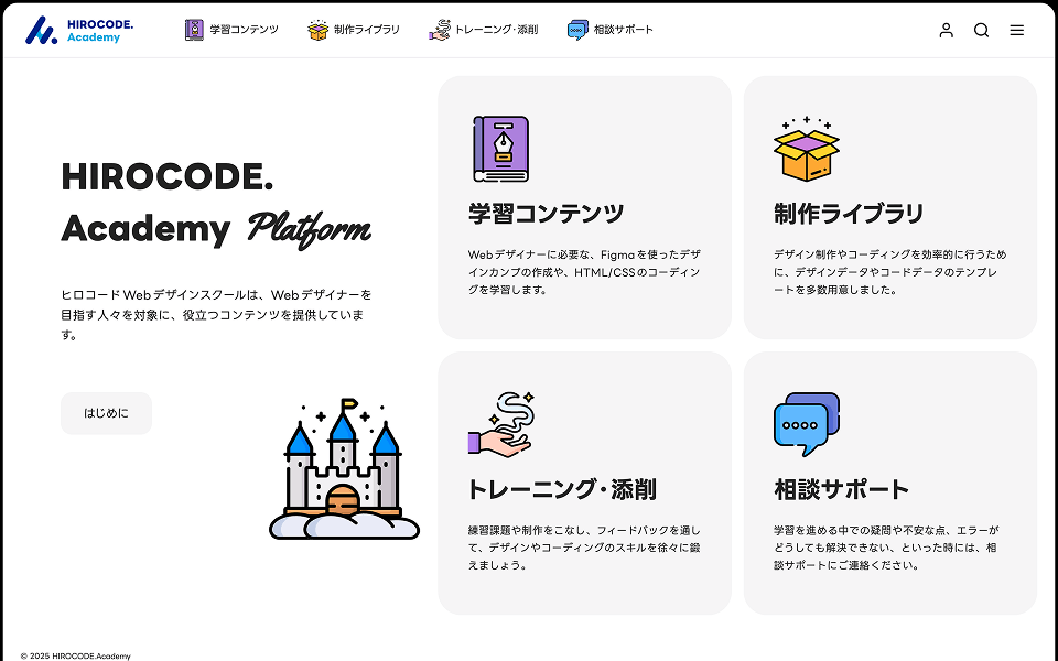 ヒロコードアカデミーは、7万人のYouTubeチャンネル登録者に支持されるWebデザイン講師が主宰する実践型スクールです。