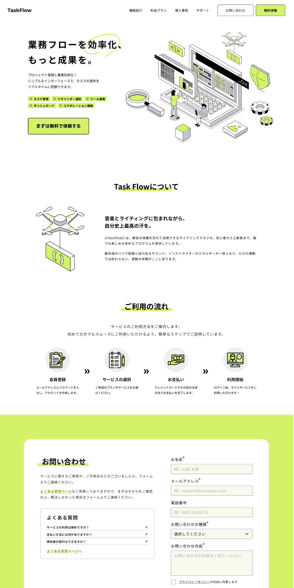 1つのデザイン課題・1つのコーディング課題を1課題として、作品が完成するまで丁寧にサポートします。